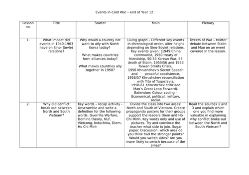 Aqa Cold War Year 12 Cold War Key Events 5 Lessons Resources And Sow Teaching Resources